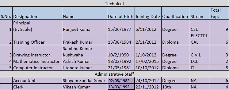 Awadhesh Singh Private ITI Technical & Administrative Staff details .